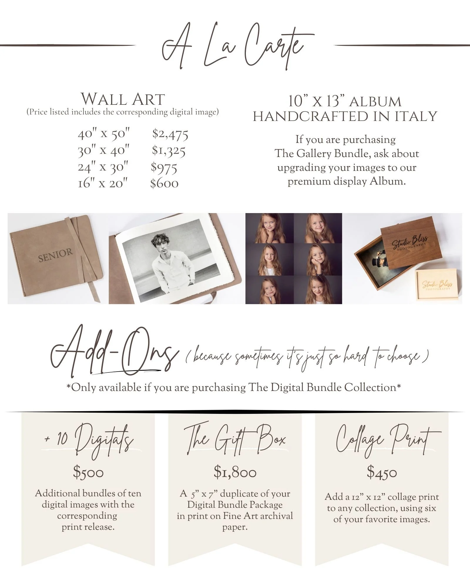 All additional images, prints, and display pieces are available a la carte, with no minimum purchase required. Only invest in what feels aligned for you and your business.